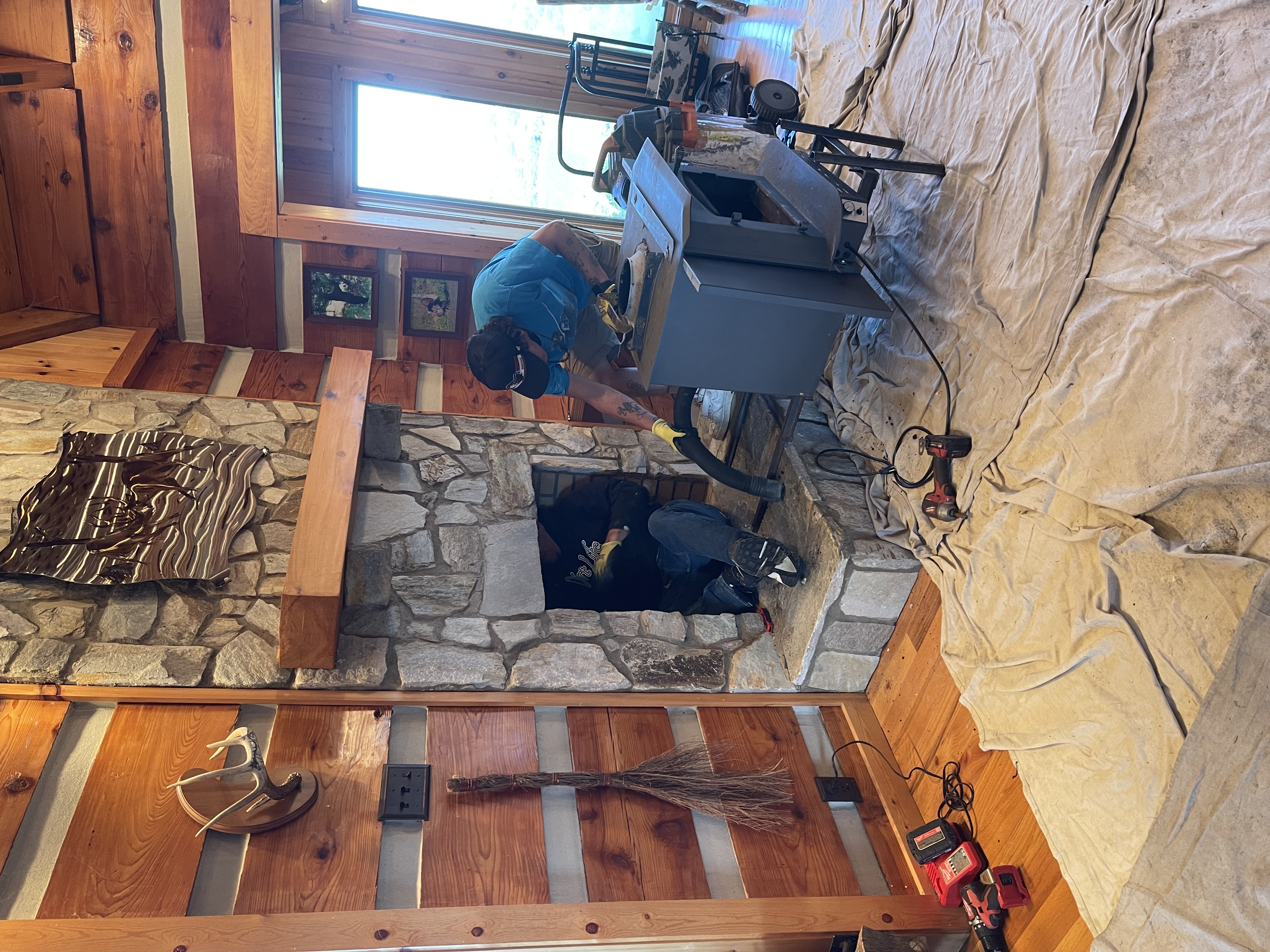 Our clean and sweep includes removing built-up creosote and soot from the chimney liner, smoke chamber, firebox, and damper.